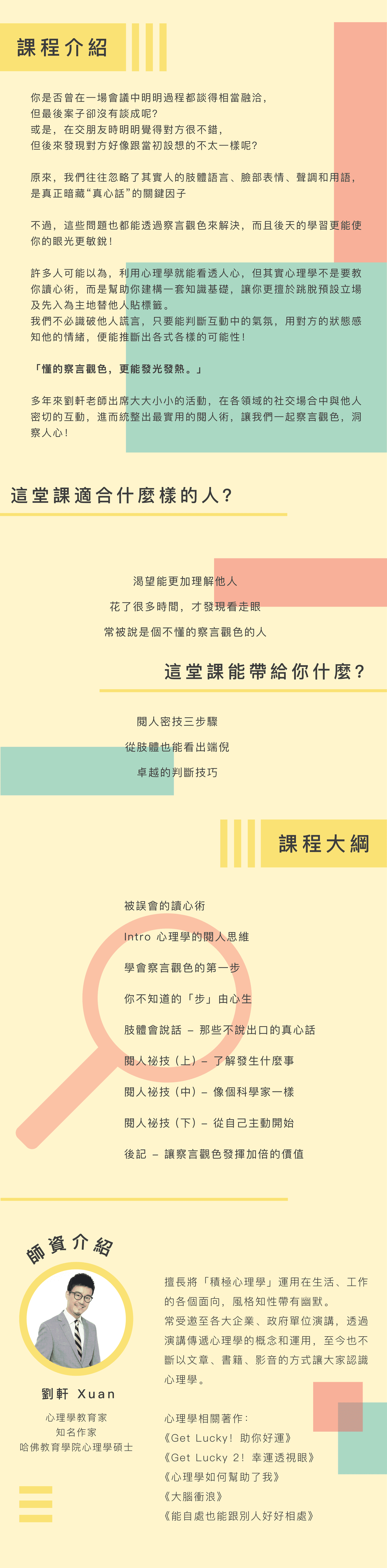 每一堂課程內容,都是團隊花費無數心力設計的,因為有大家的支持,我們才能持續帶給大家更豐富多元的課程內容。 非常歡迎您和朋友分享上課之後的心得與啟發,但請勿將影音課程以非經授權方式散佈出去喔!